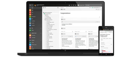 Nearly every aspect of the TYPO3 backend is configurable and customizable. Backend interfaces can often be configured using TSConfig. Nearly all rendered HTML content can be configured using TypoScript, a declarative configuration language used throughout TYPO3 for controlling front-end output.